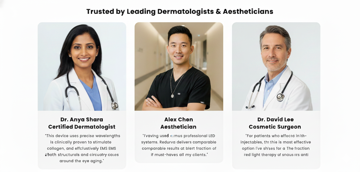"As a dermatologist, I highly recommend this Microcurrent Eye Massager for patients looking to refresh their eyes. Its blend of 650nm red light and microcurrent stimulation is a safe, effective way to reduce dark circles and puffiness in just minutes a day."