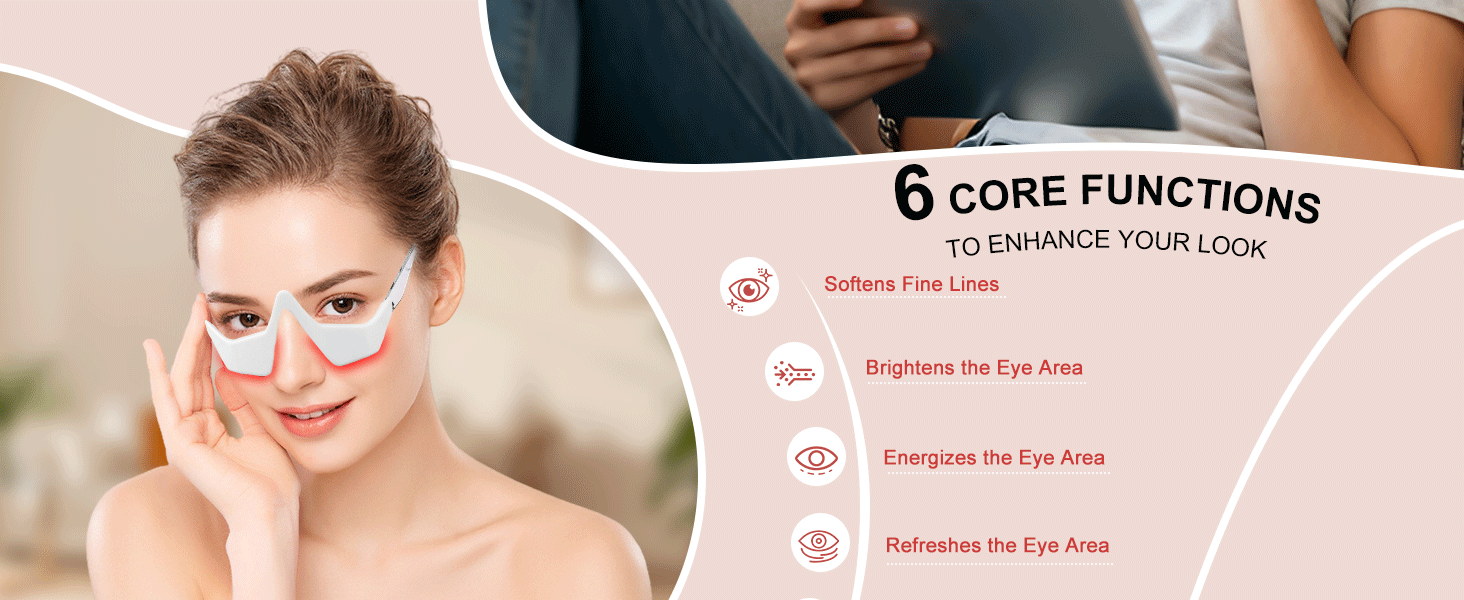 Yes. The soothing massage and warmth from the red light help relax the muscles around the eyes, providing relief after long hours on a phone or computer.