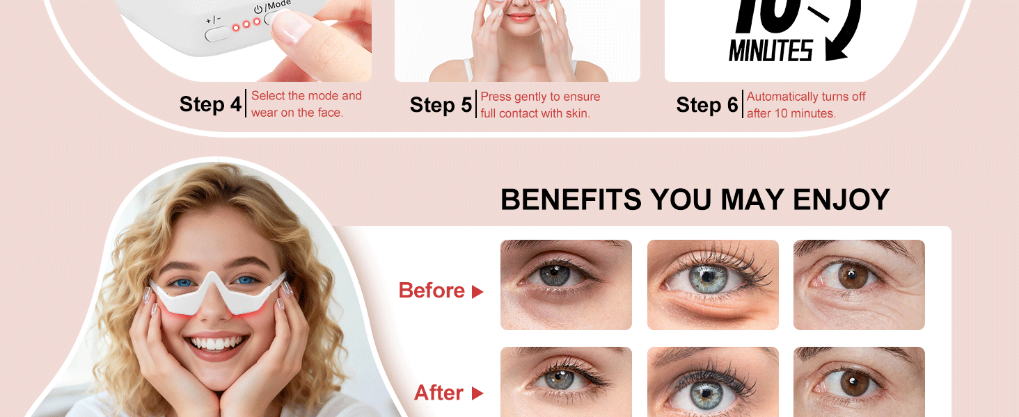 650nm is the optimal wavelength for penetrating the delicate eye area to boost collagen and firm the skin without causing irritation.