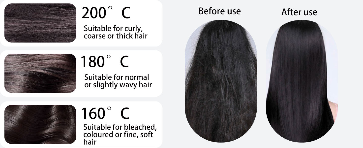 Heats up in just 30 seconds—perfect for quick, busy mornings. With three adjustable temperature settings for fine, normal, or coarse hair, it delivers smooth styling while helping reduce heat damage.